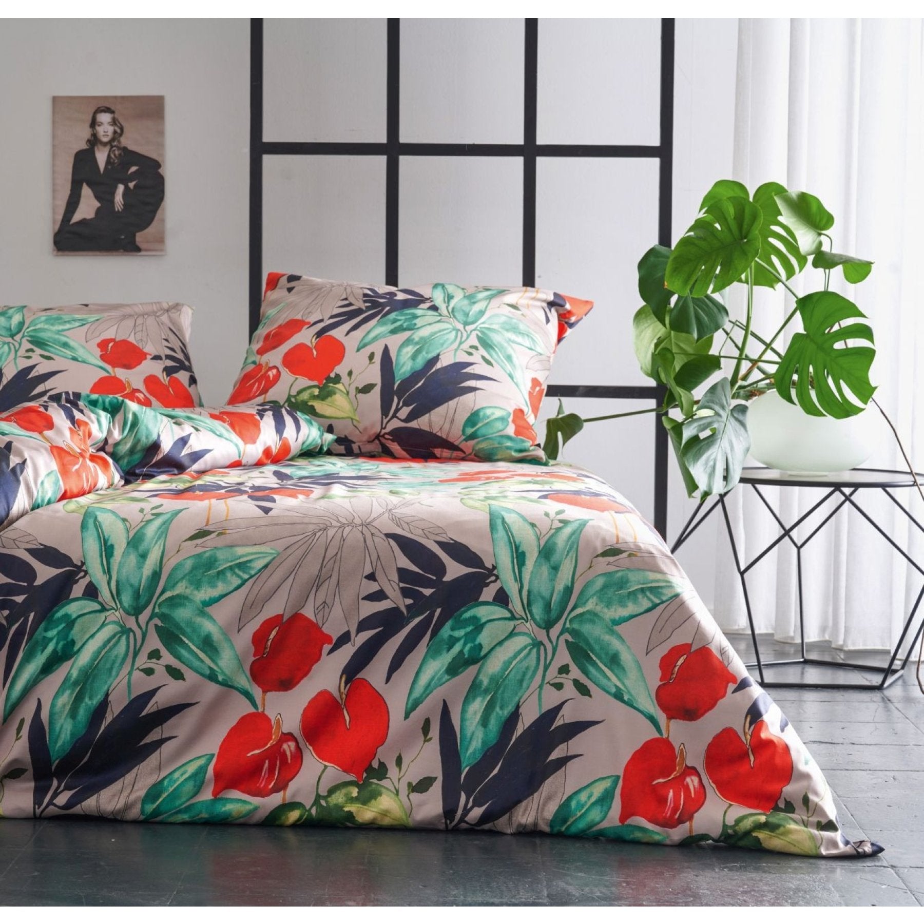 - schönes Design mit Anturienblüten und exotischen Blattmotive