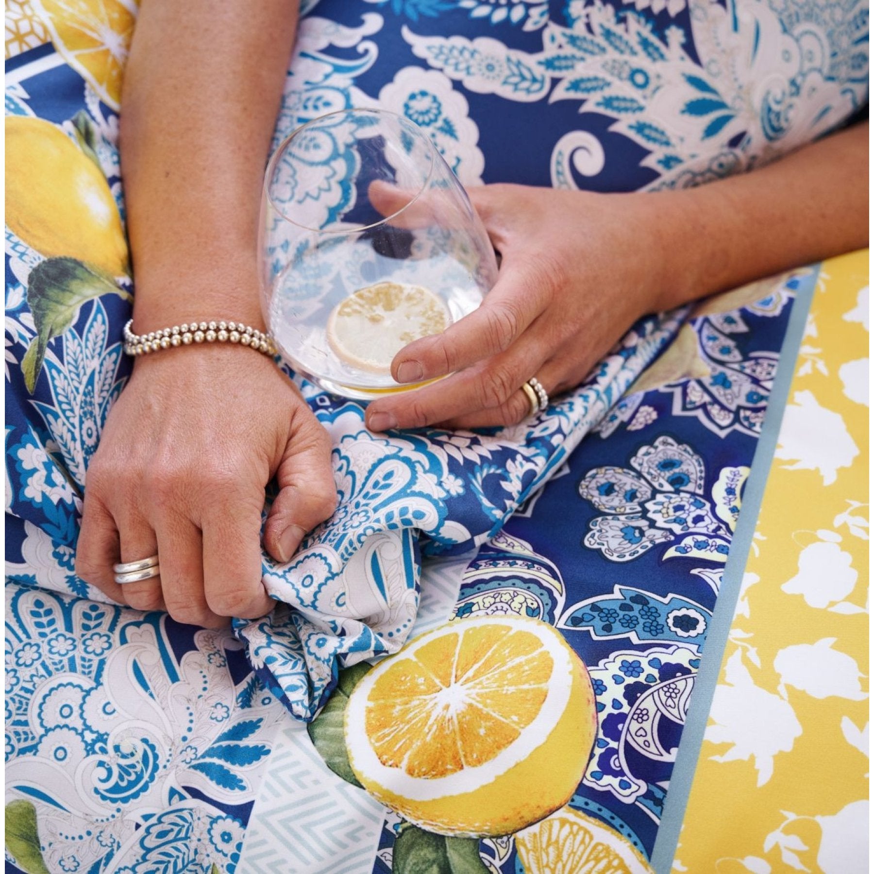 - edles Patchmotiv aus zarten Kacheln, Paisleys und Zitronen i