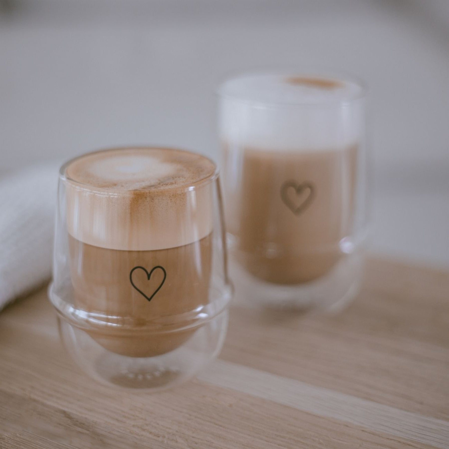 Eulenschnitt Herz Cappuccino Glas doppelwandig