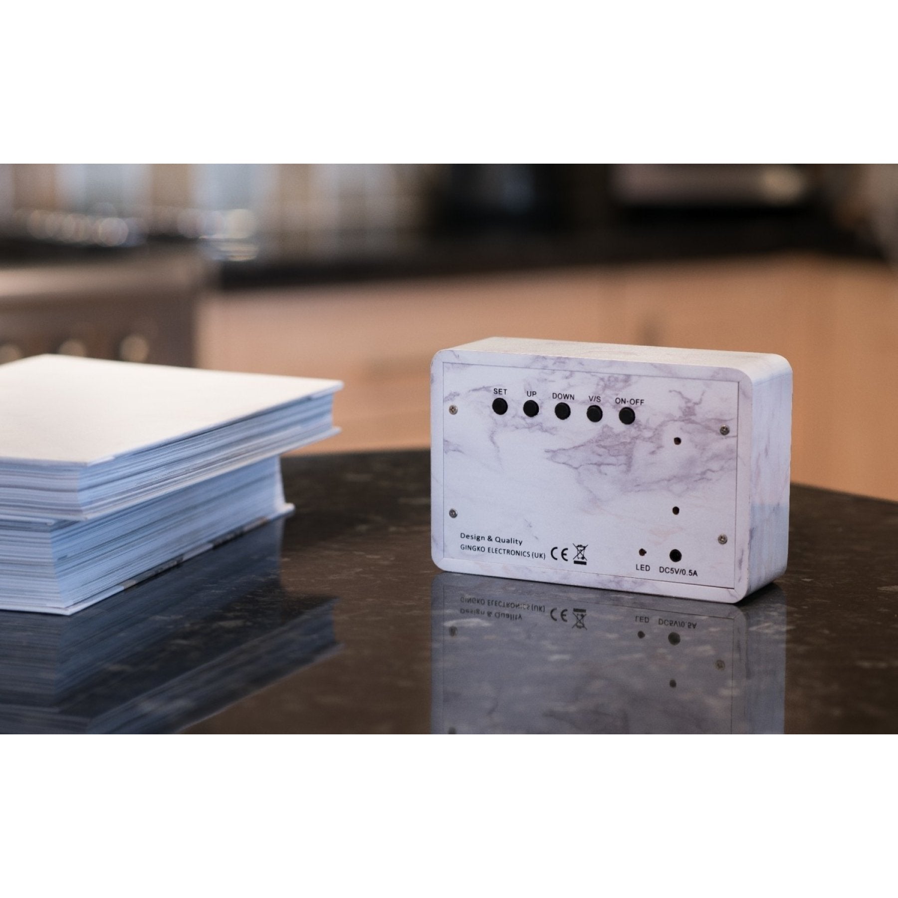 Gingko Brick Click Clock Marble Wecker Stein