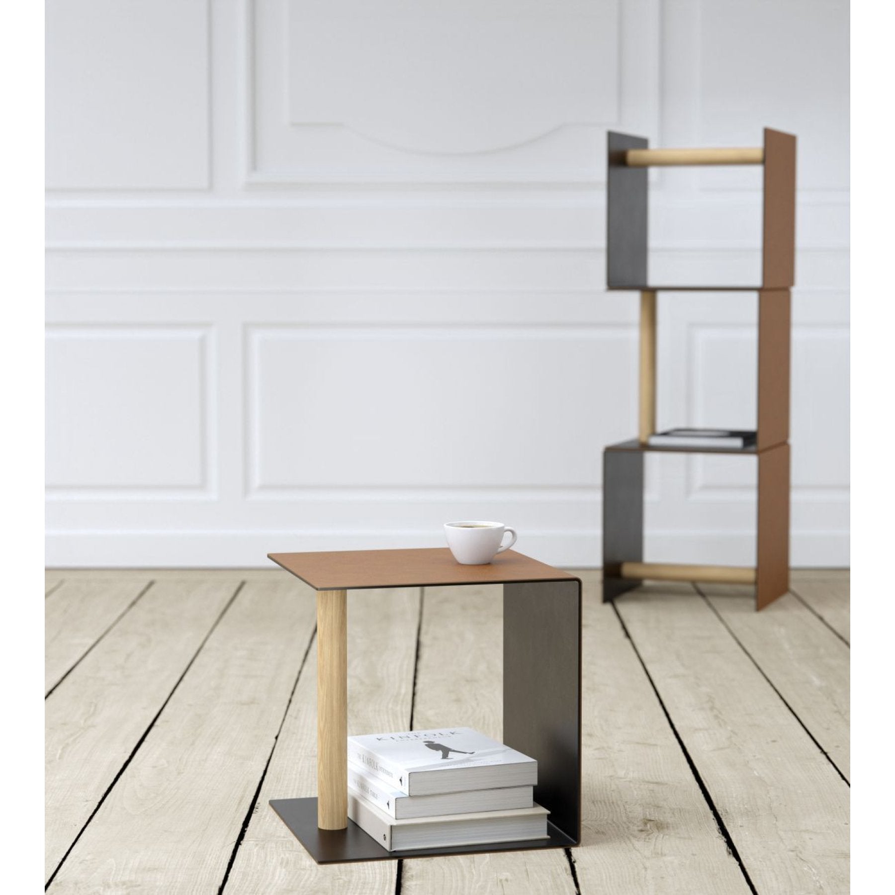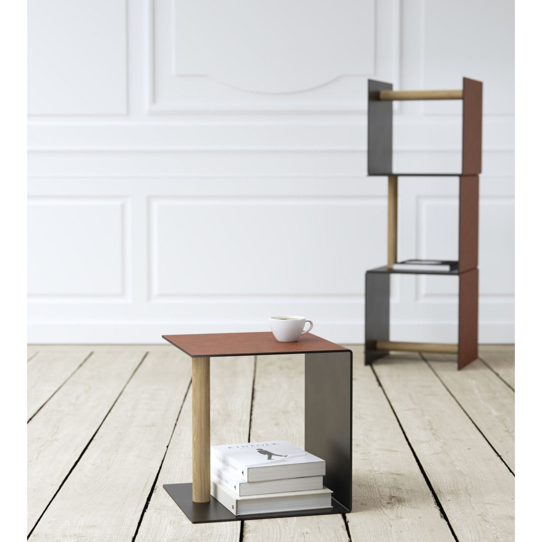 - mehrere CUBE Tische sind als Regal stapelbar