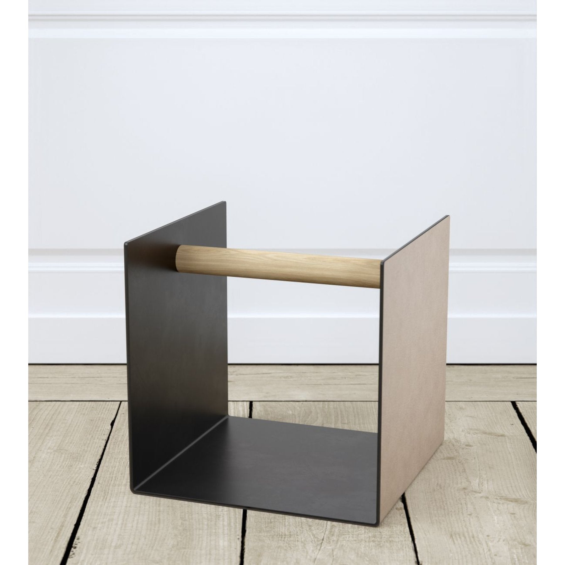 Stahl, recyceltes Leder, Eichenholz