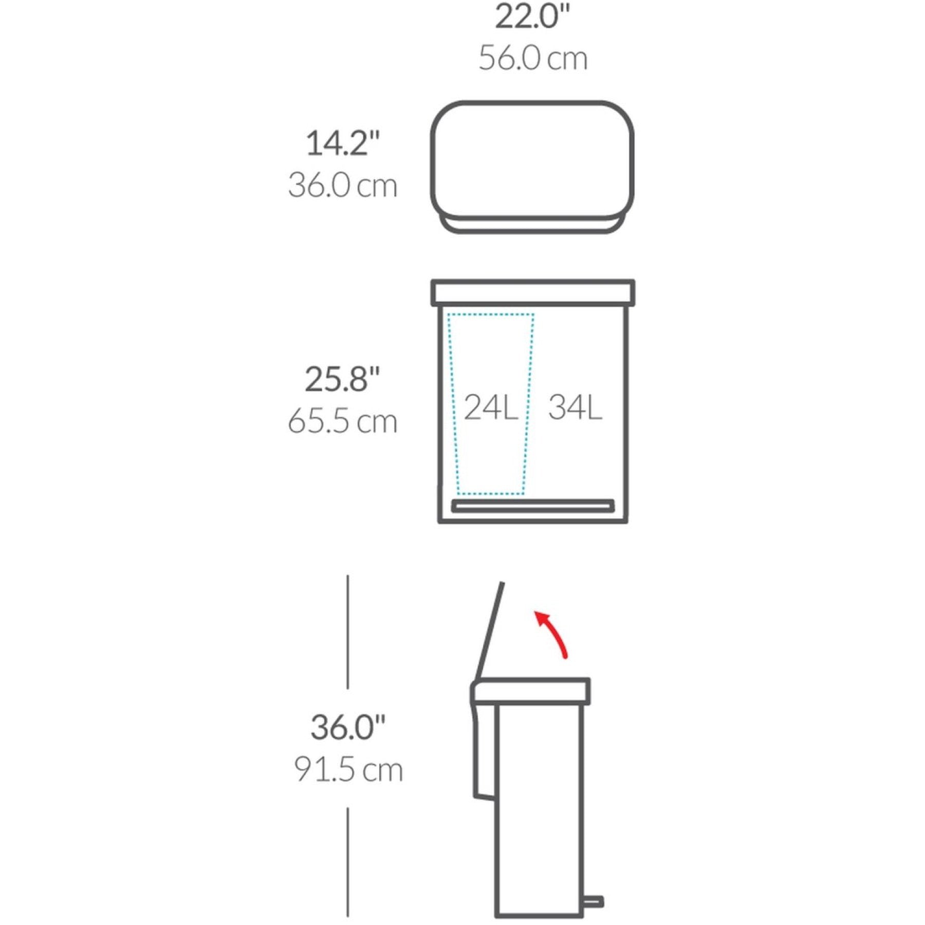 58 Liter - B 56 x T 36 x H 66 cm